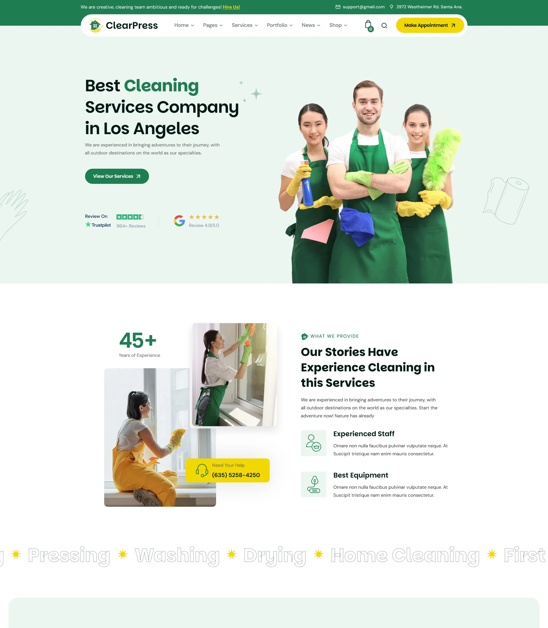 Powerful features for Cleaning Services WordPress Theme